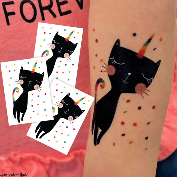 Rainbow Caticorn Temporary Tattoo Transfers Set Of 3 Black Etsy Canada